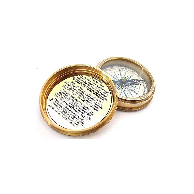 Robert Frost Poem Compass Brass Pocket Compass - Watch Type Compass