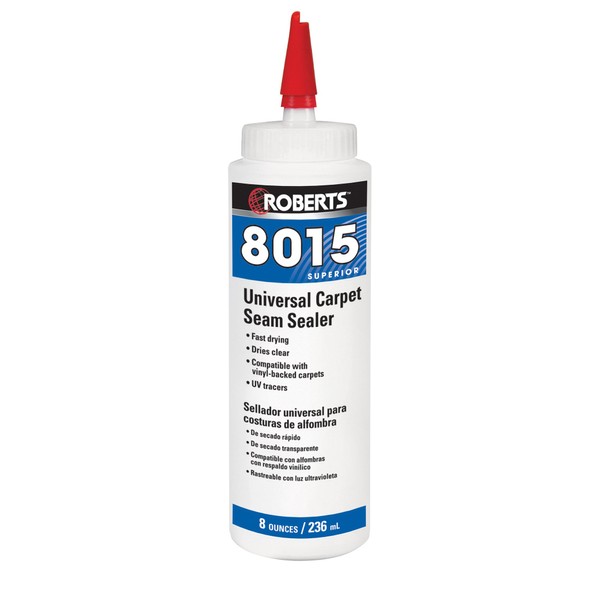 A solvent-free adhesive for seaming carpet edges to prevent unraveling and/or delamination of carpet backings and yarns, and to repair bubbles in installations. Dries clear.Easy clean-up while wet. Refillable applicator bottle (8015-A) with tip/bottle caps and is rated for residential or heavy traffic commercial applications.