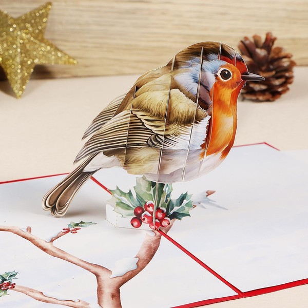 - 【Package Include】You will receive a 3d robin Christmas pop up card and an envelope.Pop up robin card is 12.7x17.8 cm.Envelope is 13.5x18.5 cm
