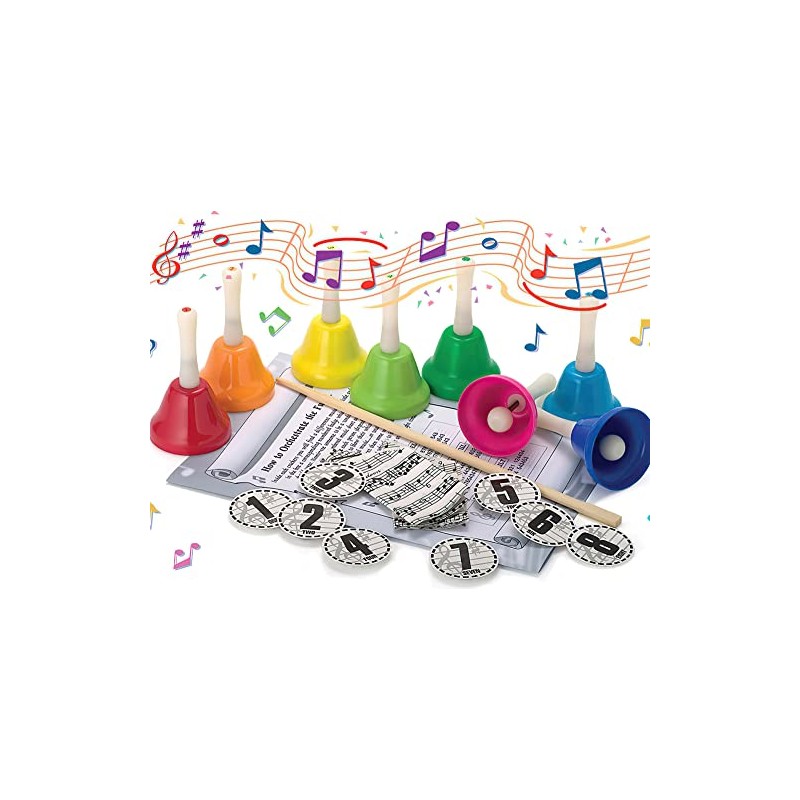 Robin Reed Jingle Bells Christmas Favors - Set of 8 Music Favors containing Metal Hand Bells and Sheet Music for Playing Your own Holiday Music