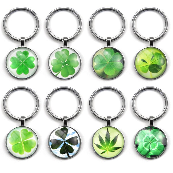 RobLuX Pack of 8 Four Leaf Clover Key Fob Lucky Charm Key Fob Green Lucky Charm Clover Pendant Key Pendant for Decoration Gifts, Green
