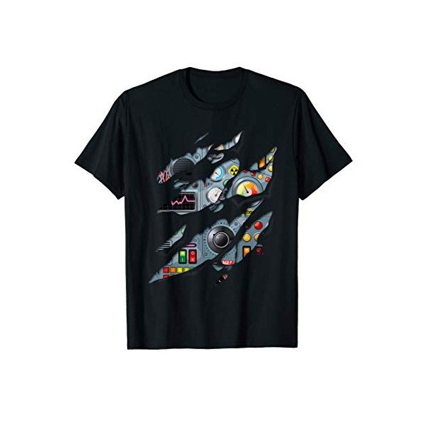 Robot Control Panel Ripped Torn Scifi Nerd Geek Tech Reveal T-Shirt