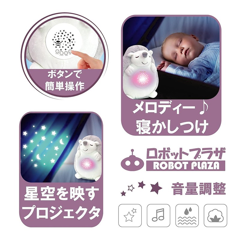 Robot Plaza Plush Toy for Sleeping Planetarium Melody Heart Sound, Baby Shower, Baby Shower, 0 Years Old, Baby (Hedgehog)