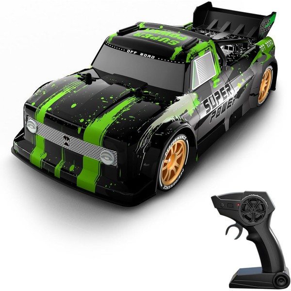 - Multi-functional Cool RC Car: 2 types of tire replacement, spraying function, four wheel drives, front and rear light lights, drift, and car cover removable, multi-functional and fun. The removable car cover is made of premium carbon fiber material, shock absorption. Rechargeable 7.4V lithium battery 14500/600mAh, running time about 13-15 minutes