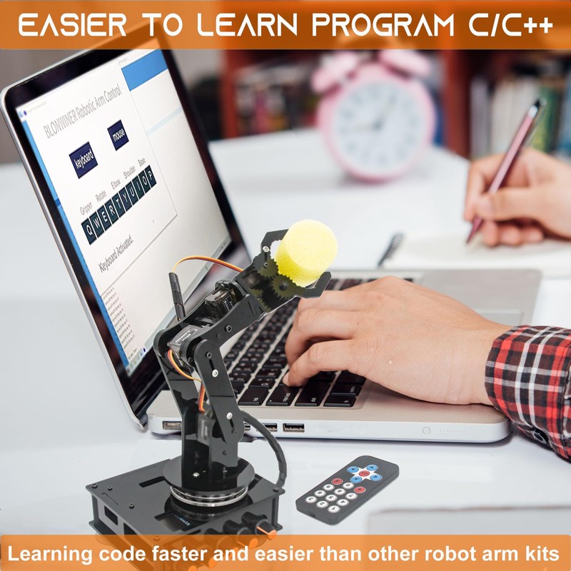 - Multi-Mode Control Robot Arm Kits:1. Robot arm kits with 5 rotation buttons that can control the device. 2. Robotic arm kits support remote control. 3. Robot kits support keyboard and mouse control.