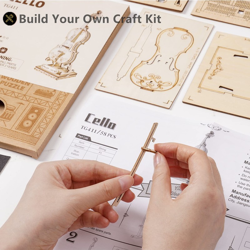ROBOTIME - Kits de construcción de madera para niños, rompecabezas de madera 3D, kit de modelo de violonchelo para construir juguetes para niñas