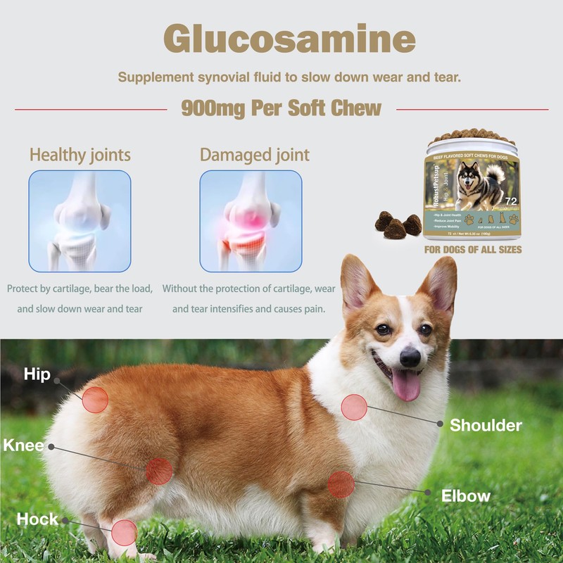 Robustpetsup Beef Flavored Dog Hip and Joint Supplement Soft Chews Dogs - with Glucosamine & Chondroitin and MSM - Dog Joint Supplements & Extended Joint Care, 72 Ct