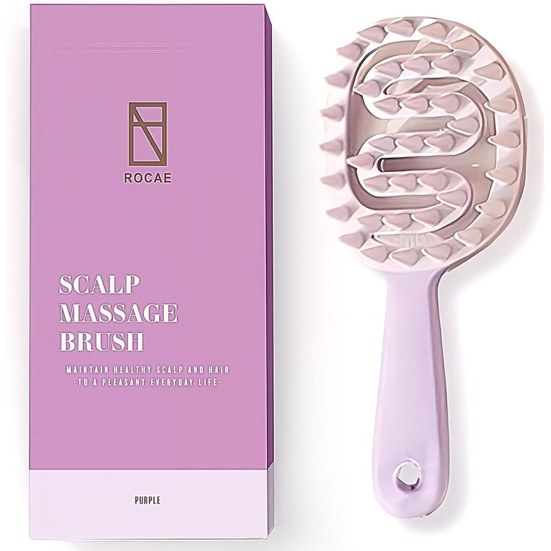 ROCAE, Non-Slip Handle Hard Shampoo Brush with Flexible Base for Scalp Fit, Firm Pins for Deep Scalp Cleansing, Dirt-Resistant Design - Scalp Care (Purple)