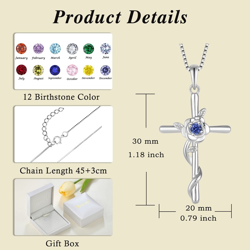 Rocayi Cross Necklace for Women 925 Sterling Silver December Birthstone Tanzanite Necklace Rose Flower Pendent Crucifix Faith Religion Jewelry Gifts for Women Wife Mother Daughter Her