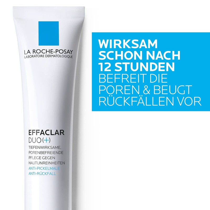 La Roche-Posay Effaclar Duo (+) deeply and mattifying gel cream care is quickly absorbed and has a non-greasy texture. The pore-relieving face cream ensures rapid reduction of strong blemishes and pimples. It prevents the formation of new pimples. The Effaclar Duo (+) gel cream helps to counteract clogged pores with the following active ingredient innovation: Procerad: Effective ceramide, which prevents the formation of red and brown spots. Mannose: Helps correct impurities. APF: Helps restore balance of the skin. Effaclar Duo (+) has been tested on greasy, acne-prone skin with strong and recurring impurities and pimples. The gel cream is particularly suitable for sensitive skin of teenagers and adults.