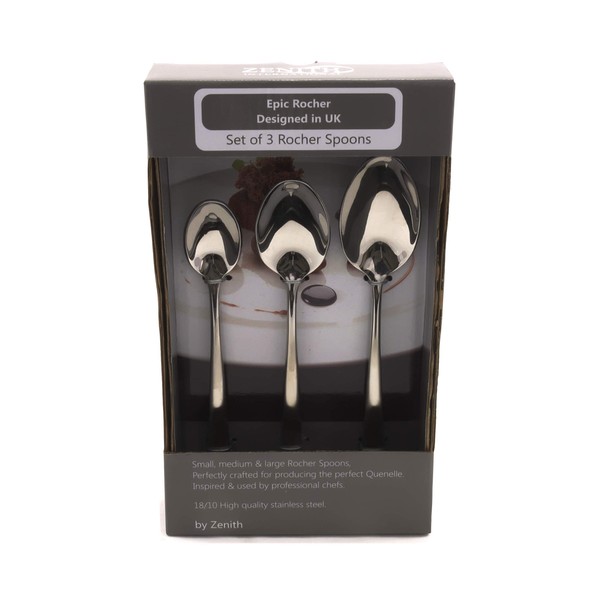 Rocher Chef Professional Catering Spoons Set of 3, Small, Medium and Large, 18/10 Rocher Spoons, Stainless Steel, Perfect for Producing a Rochelle and One Handed Quenelle