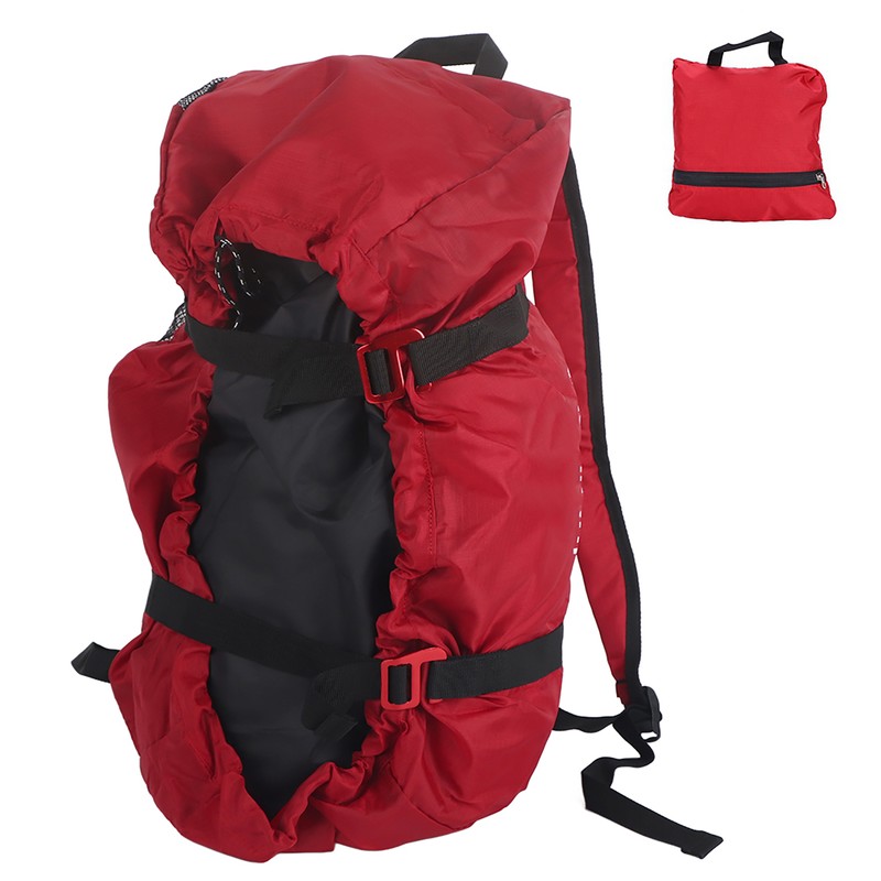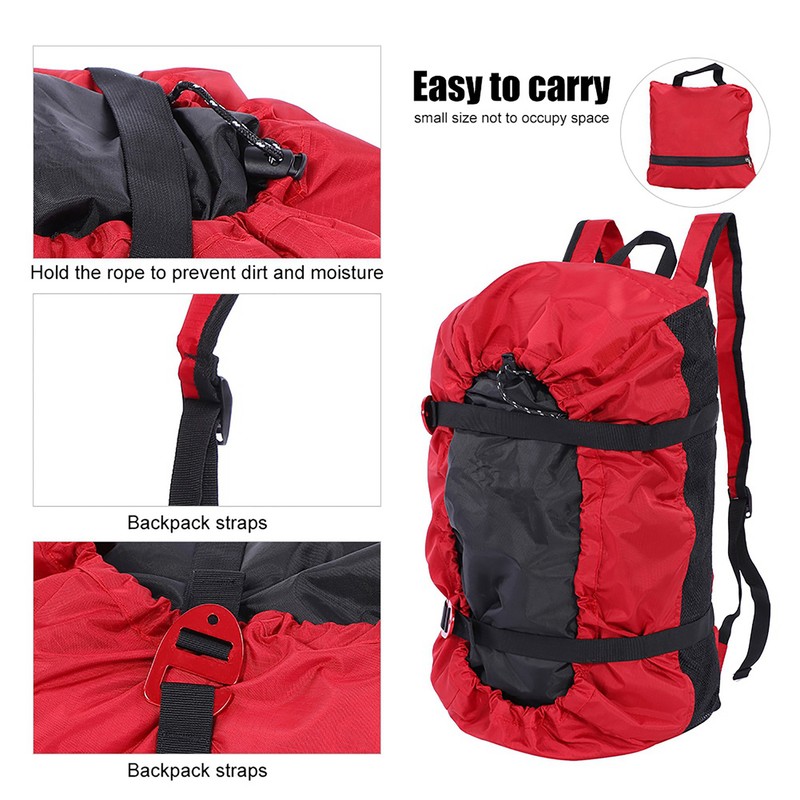Rock Climbing Rope Kit Bag Folding Shoulder Strap for Outdoor Camping Hiking (Red)