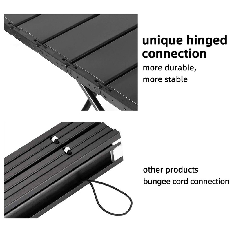 - NEW UPGRADE: Our new upgraded high quality mini folding camping table tops feature a unique hinged connection, compared to other folding table tops with a bungee cord connection, more durable, more stable