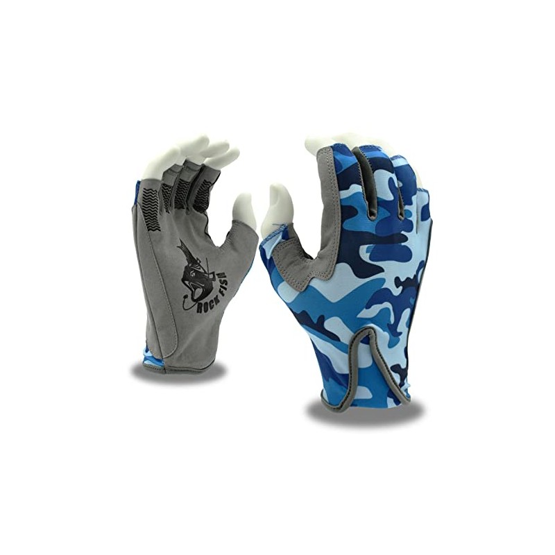 Rock Fish FP2000B Blue Camo Fishing Gloves with Standard Wrist and Synthetic ...