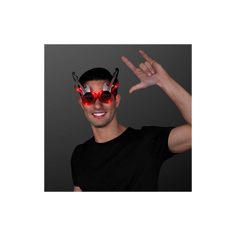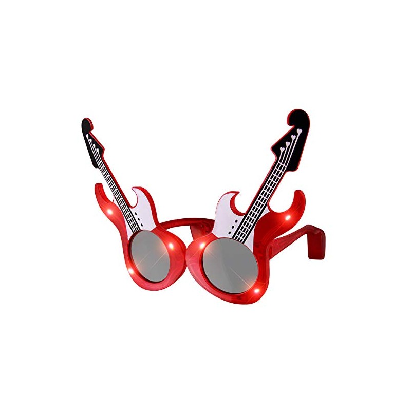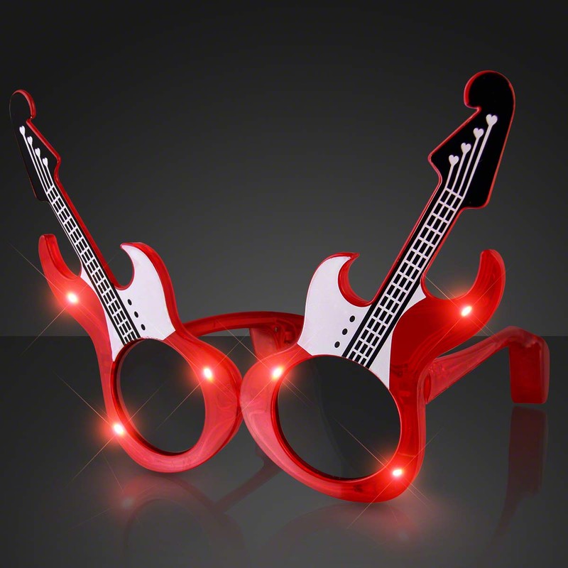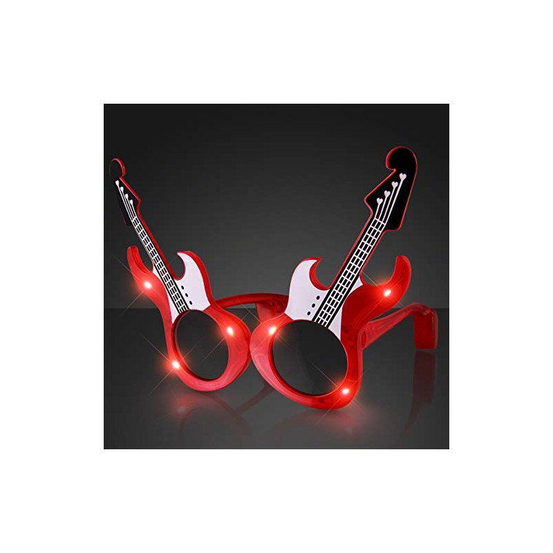 - INCLUDES: Twelve Pairs of Party Shades Rock Guitar Shaped Retro Style Glasses with Bright Red LED Lights