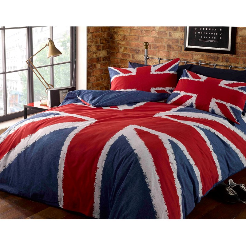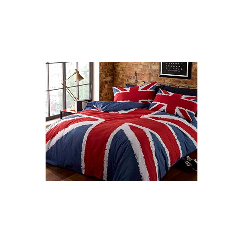 Rock N Roll Funky Union Jack British Uk Blue Red White Single Duvet Cover Bedding Bed Set,1 pack, Blue