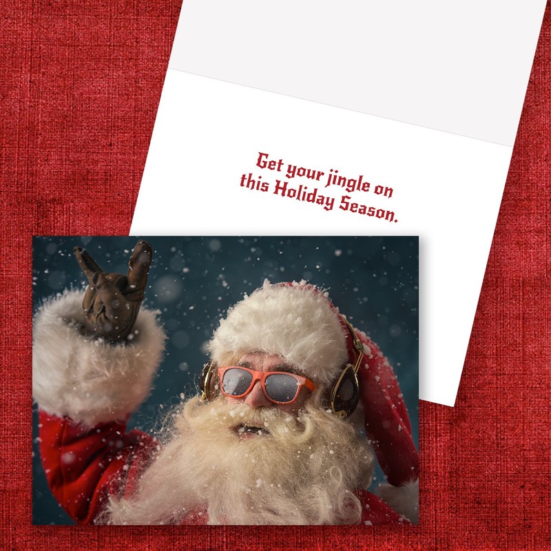 Rock 'n Roll Santa Holiday Card Pack - Set of 25 cards - 1 design, versed inside with envelopes
