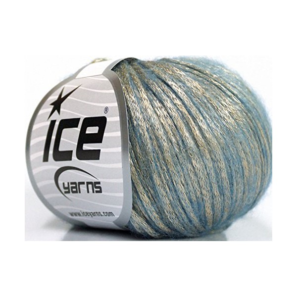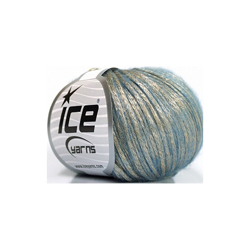 Rock Star, Light Gold, Light Blue, Metallic Shine, Soft Nylon Merino Wool Acrylic Blend Yarn 50 Gram, 52019