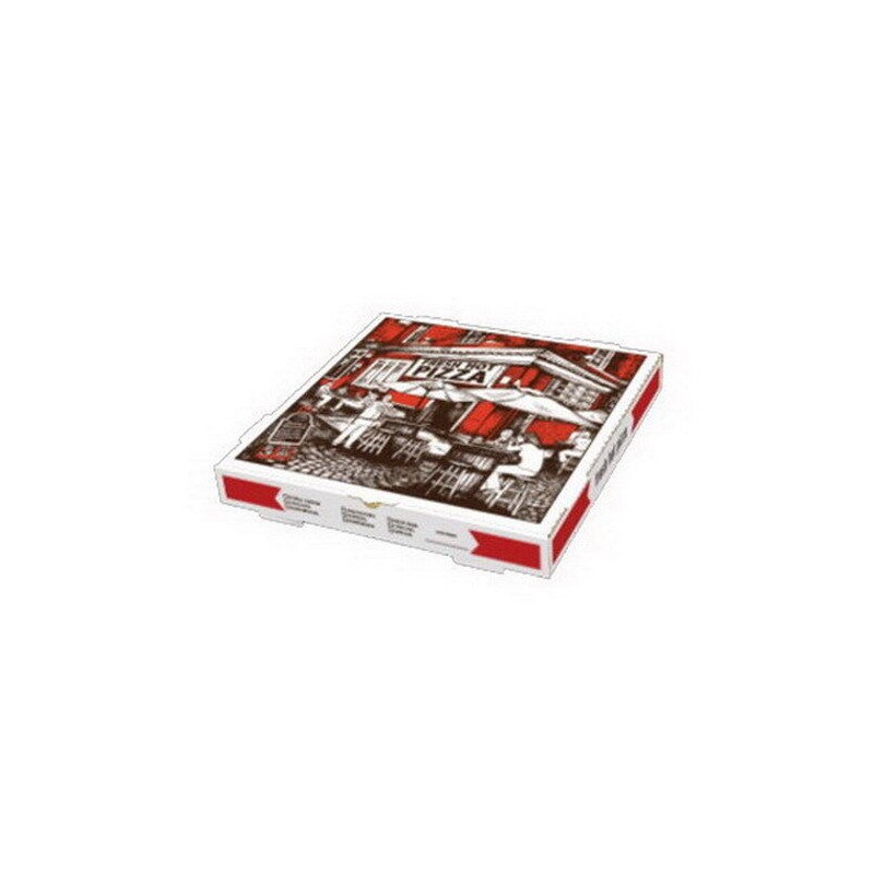 Rock Tenn Square Cafe Design B-Flute Corrugated Pizza Box White 12" L x 12" W | 50/Bundle
