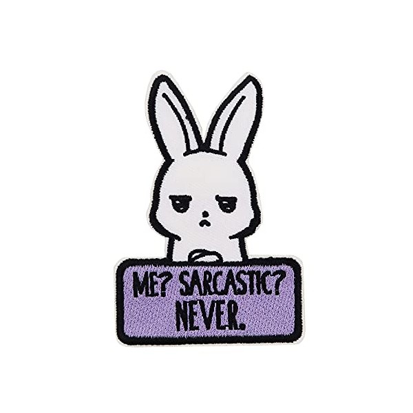 ROCKAPATCH Funny bunny Me Sarcastic Never Meme patches Embroidered Iron On Patch Sarcastic Stickers