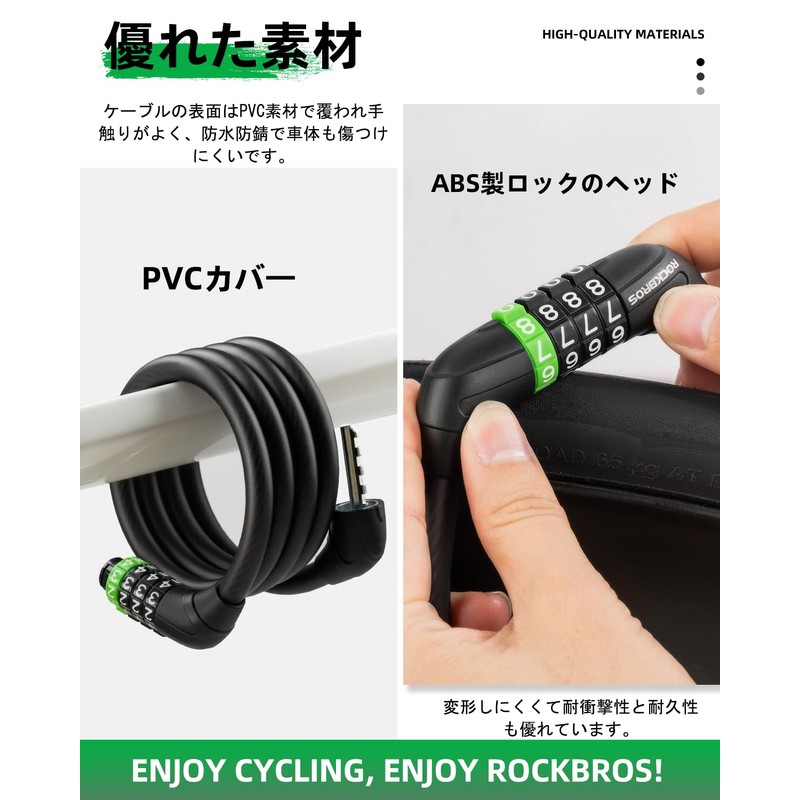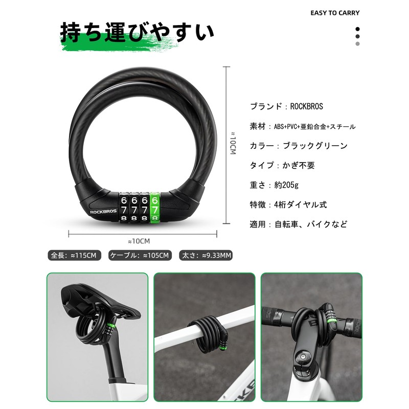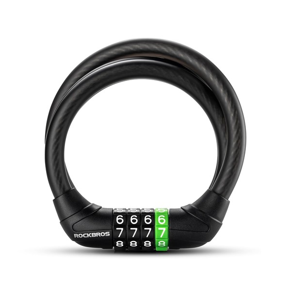 ROCKBROS Bicycle Key Lock, Dial Lock, Wire Lock, 4-Digit Type, Anti-theft, Durable, Anti-Theft, High Cut, Zinc Alloy, Rust Resistant, Durable, 45.3 inches (115 cm), Compact, Road Bike, MTB, Cross Bike