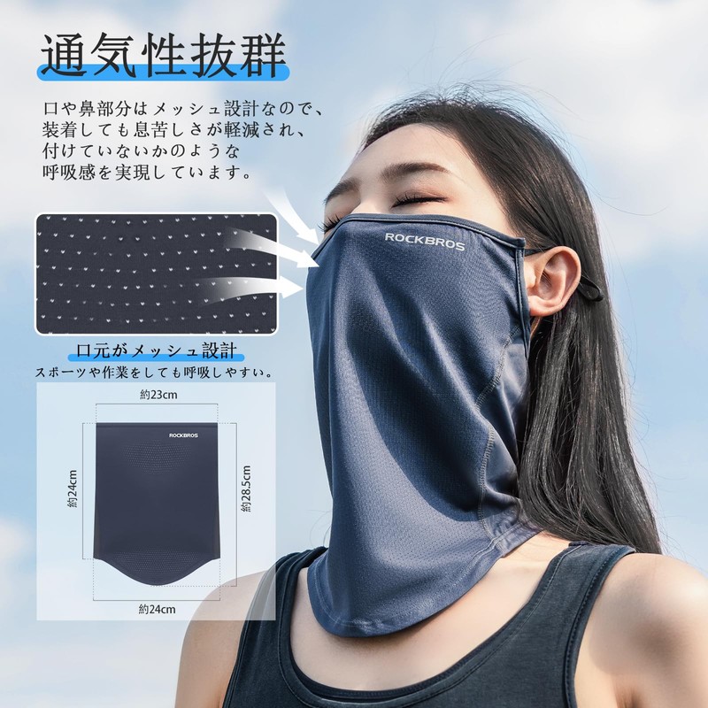 ROCKBROS Face Cover, UV Protection, For Summer, Cooling Sensation, Neck Cover, Neck Warmer, Sun Protection, UPF 50+, Does Not Suffer From Breathing, Sweat Absorbent, Quick Drying, Windproof,