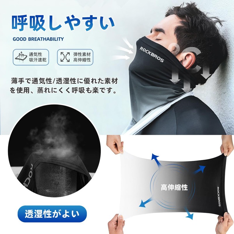 ROCKBROS Face Mask, Summer, UV Protection, Cooling Sensation, Neck Cover, Sun Protection, UPF50+, Does Not Strain from Breathing, Sweat Absorbent, Quick Drying, Neck Warmer, Thin, Lightweight
