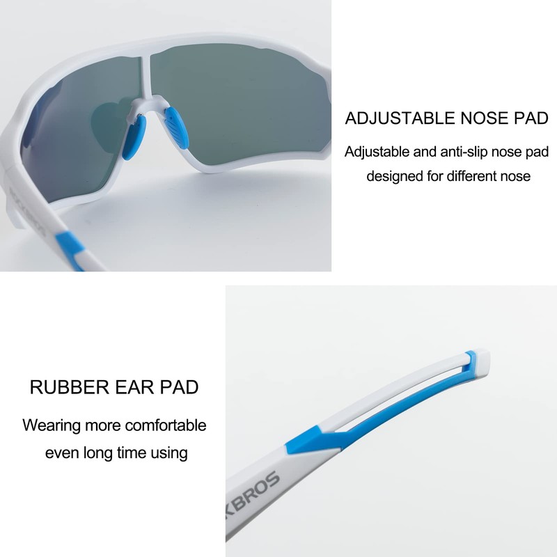 3. ROCKBROS polarized lens can show the most reality and colorful world to you. Increasing contrast and deepening perception, thereby protecting your eyes perfectly, ideal for partly cloudy to sunny conditions, also good for cycling, fishing, running, climbing, etc.