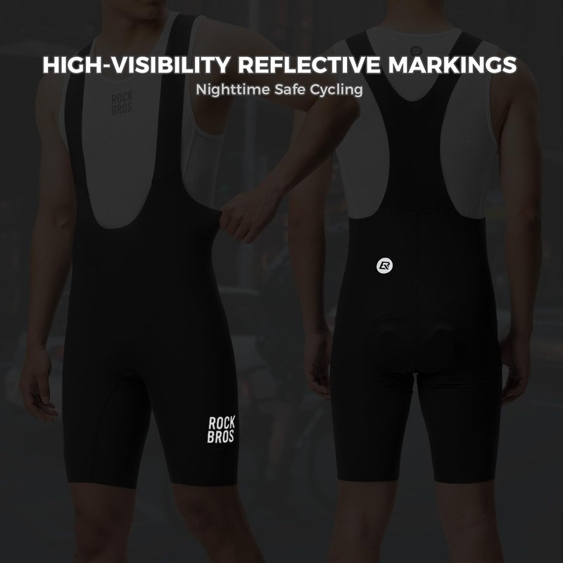 ROCKBROS Radhose Herren Kurz Gepolstert mit TräGer, Fahrradhose Kurz Mit Reflektoren, Elastischem Atmungsaktive Bib Shorts FüR Rennrad & MTB Im Sommer