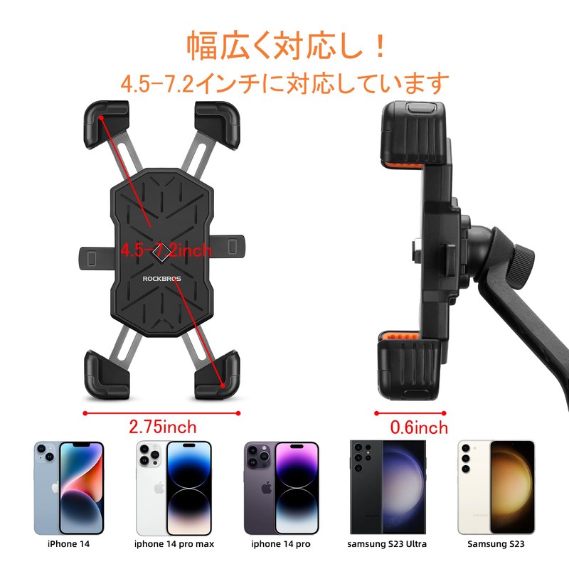 ROCKBROS Smartphone Holder, Bicycle, Mobile Holder, One-Handed Operation, 1 Second Lock, Smartphone Arm, Compatible with 4.5 - 7.2 Inches, Anti-Slip, Vibration Absorption, Smartphone Stand, ABS+PC,