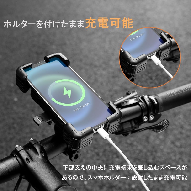RockBros Smartphone Holder, Bicycle, Mobile Phone Holder, One Hand Operation, 1 Second Lock, Smartphone Arm, Supports 4.5 - 7.2 inches, Anti-Slip, Vibration Absorbent, Smartphone Stand, ABS + PC, 360 Degree Rotation, Motorcycle, Fall Prevention, Strong Fixing, Handlebar Mounting, Freely Adjustable, Quick Hold, Road Bike, Motorcycle, Baby Stroller