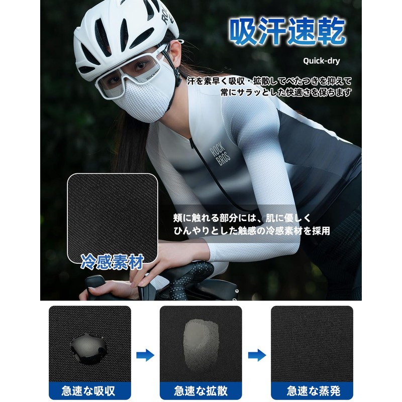 [ROCKBROS] スポーツマスク マスク 冷感 夏用 息がしやすい 日焼け防止マスク uvカットマスク UPF50+ 吸汗速乾 通気性 伸縮性 布マスク 洗える 立体 小顔効果 スポーツ ランニング バイク サイクリング トレーニング レディース メンズ