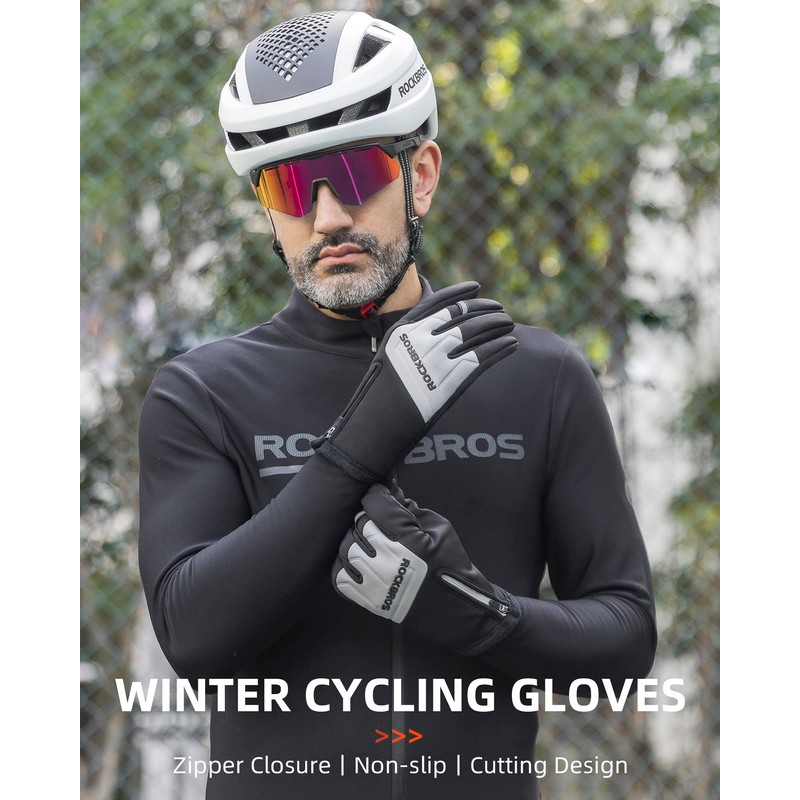 - ✔FASHION LOOKS AND WIDELY USING: Stay stylish while enjoying outdoor activities with our ROCKBROS mens cycling gloves. Featuring a splicing shape and zipper closure, these gloves are perfect for skiing and cycling. Suitable for various outdoor activities such as cycling, running, skiing, winter motorcycling, snow-biking, and walking.