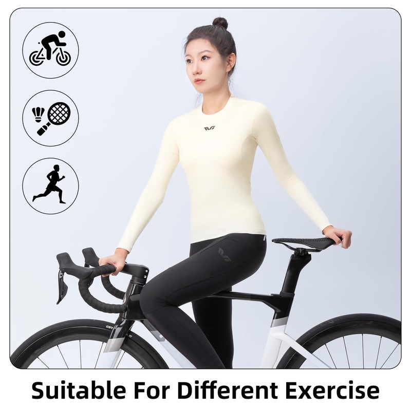 ROCKBROS Women’s Thermal Shirts Winter Cycling Long Sleeve for Women Fleece Lined Base Layer Underwear Suit Fitted Tops Off-white