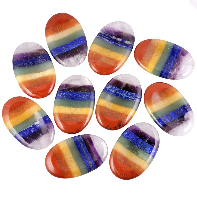 Rockcloud 1 PC 7 Chakra Thumb Stone Pocket Palm Stone Healing Crystals Energy Rock