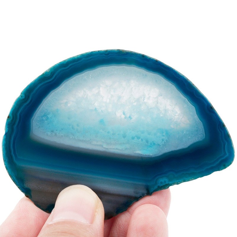 - Set of 10 undrilled agate slices.Length:1.2-3 inch;Width:0.78-2 inch;thickness:0.2 inch.Artificially color enhanced Blue agate slices to provides a stylish,outstanding appearance.
