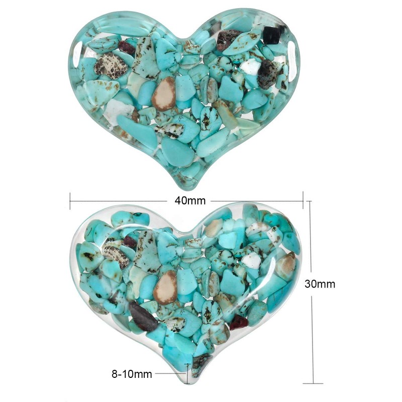 Rockcloud Heart Shape Crystal Pocket Stones Resin Puffy Heart Healing Crystal Stone Chips Energy Balancing for Home Decoration, Howlite Turquoise, Pack of 4