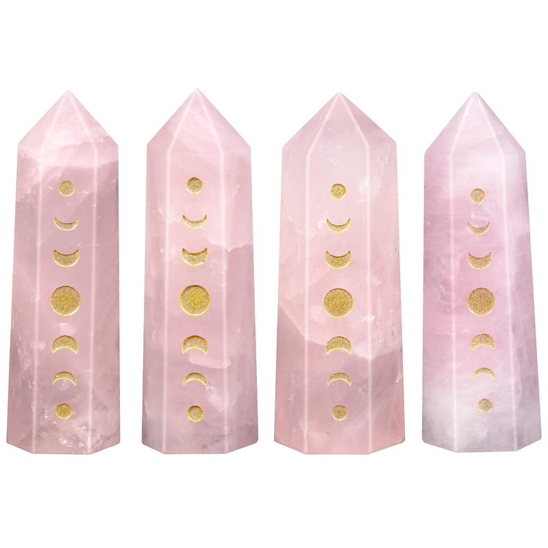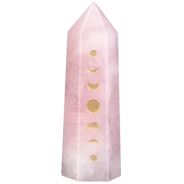 Rockcloud Moon Phase Engraved Crystal Point, Lunar Eclipse Hexagonal Wand Pocket Stone for Reiki Meditation Home Decoration, Rose Quartz