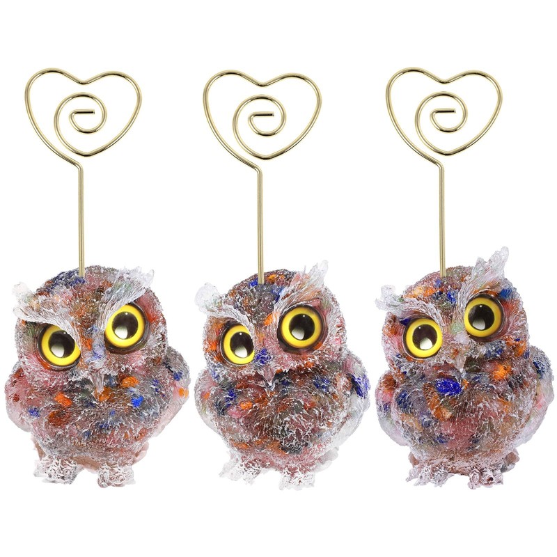 rockcloud Natural Mixed Crystal Owl Table Card Holder Heart Shaped Cute Animals Resin Table Number Holder for Wedding Home Office Decoration