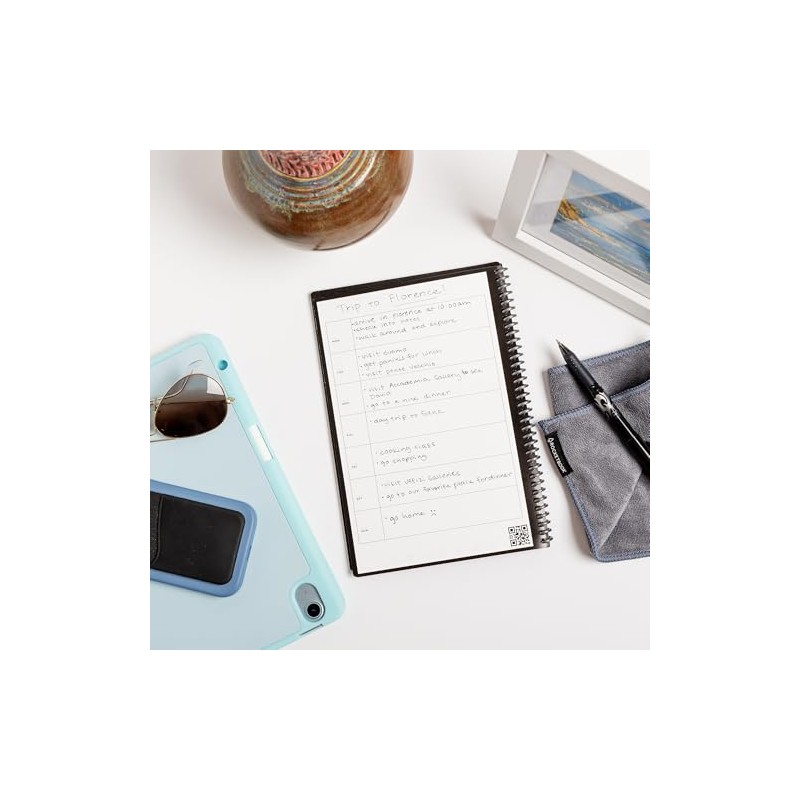 - Includes 1 Rocketbook everlasting letter size (8. 5" X 11") notebook, 1 Pilot Frixion pen, and 1 microfiber cloth
