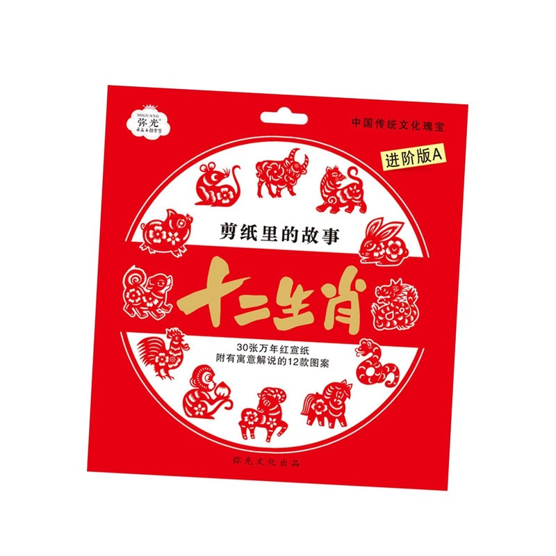 rockible Chinese Paper Cutting Kit,New Year Dong Fang Xuan Paper Zodiac Signs,DIY, Blessing Window Decal Sticker for Activity Adults