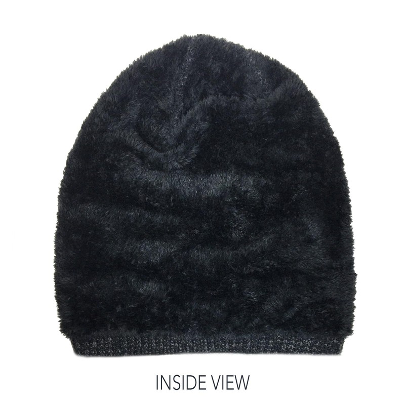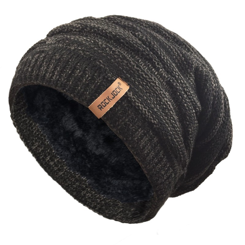 RockJock Mens Winter Knitted Slouch Beanie with R80 Thermal Insulation and Cosy Fleece Lining-Black/Grey