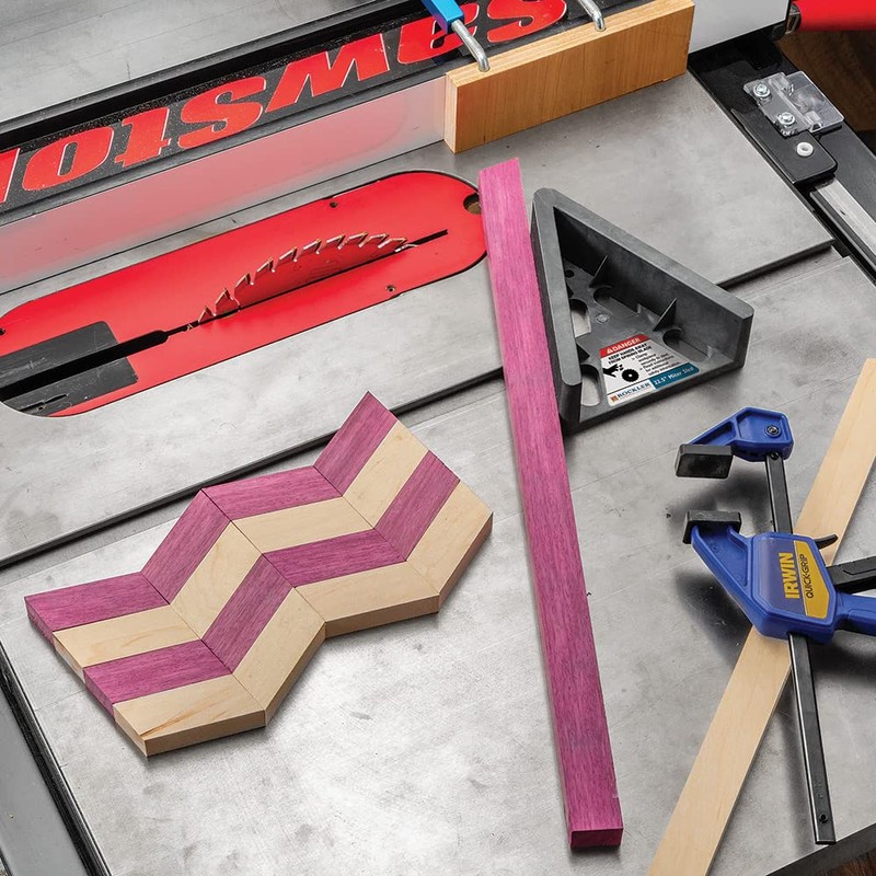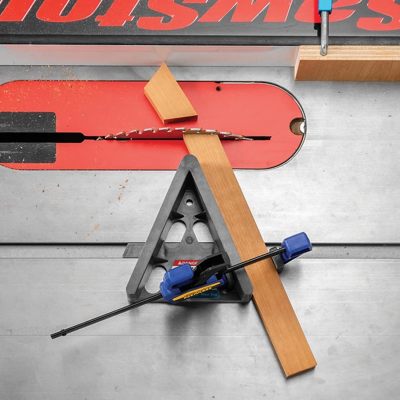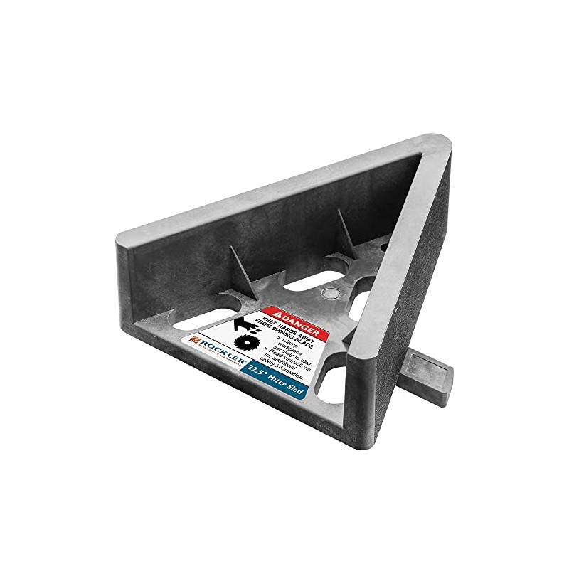 Simplicity and ease-of-use make our new 22.5° miter sled a top pick for octagonal frames and segmented turning glue-ups. No adjustments are required—just drop it into the miter track and start cutting. Since it's built from a single piece of glass-filled nylon molded at 22.5°, you'll never have to worry about your angles slipping. And with dual fences permanently set at opposite angles, you can cut both ends of all frame segments in shockingly little time. The sled arrives complete with two strips of adhesive-backed sandpaper pre-applied to the fences to prevent slippage. Two nylon set screws housed in threaded brass bushings help to eliminate any slop in the miter slot. Together, the locked-in miter angles and slip-free performance amount to rock-solid, gap-free miters. The sled has a 3/8'' x 3/4'' miter bar that fits almost any table saw. Features: Dual fences are permanently set at opposite angles for fast mitering of eight-sided frames and segmented turning glue-upsNo fussy miter gauge setups, test cuts or resetting the fence for opposite anglesSimply cut one end on the leading face and the other on the trailing face—complementary angles produce perfect miters every timeThrough-slots in the base let you clamp moldings at table level for a secure holdAbrasive tape on fences helps prevent workpieces from slippingFits standard 3/8'' x 3/4'' miter slot—nylon set screws on miter bar allow fine-tuning for a no-slop fitMade from durable glass-filled nylonCan be drilled to add extended fences and stops