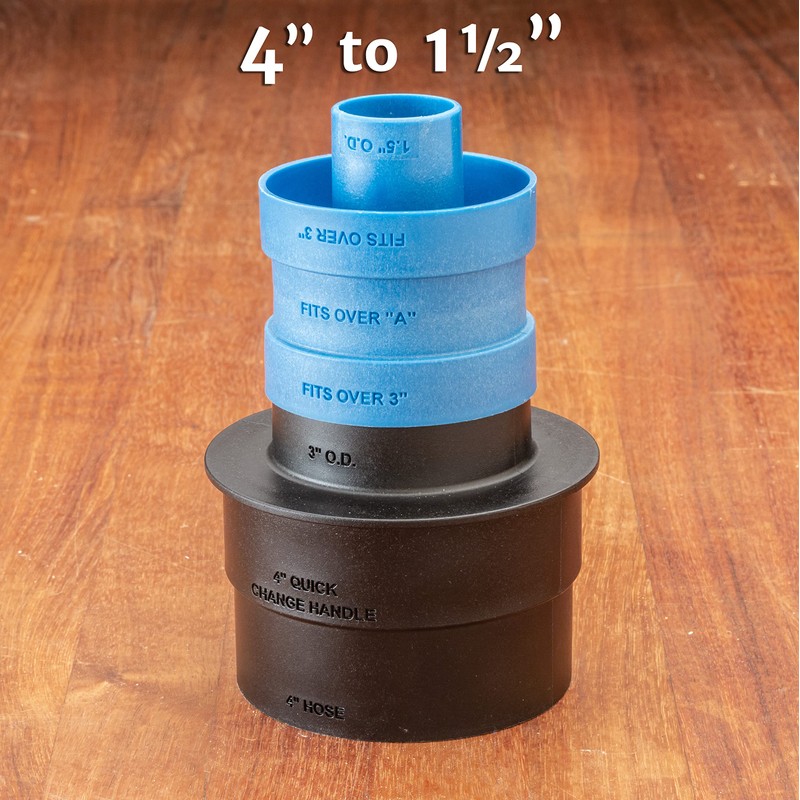 - Features: Our dust collector fitting adapter set has 3 interchangeable adapters that can be combined in 5 different ways for connecting dust hoses and tools to dust collection. This shop vacuum port adapter set reduces 4 hose/handle to 3 OD, 2-1/2 OD/2-1/4 ID, 2-1/4 OD/2 ID, and 1-1/2 OD/1-1/4 ID.