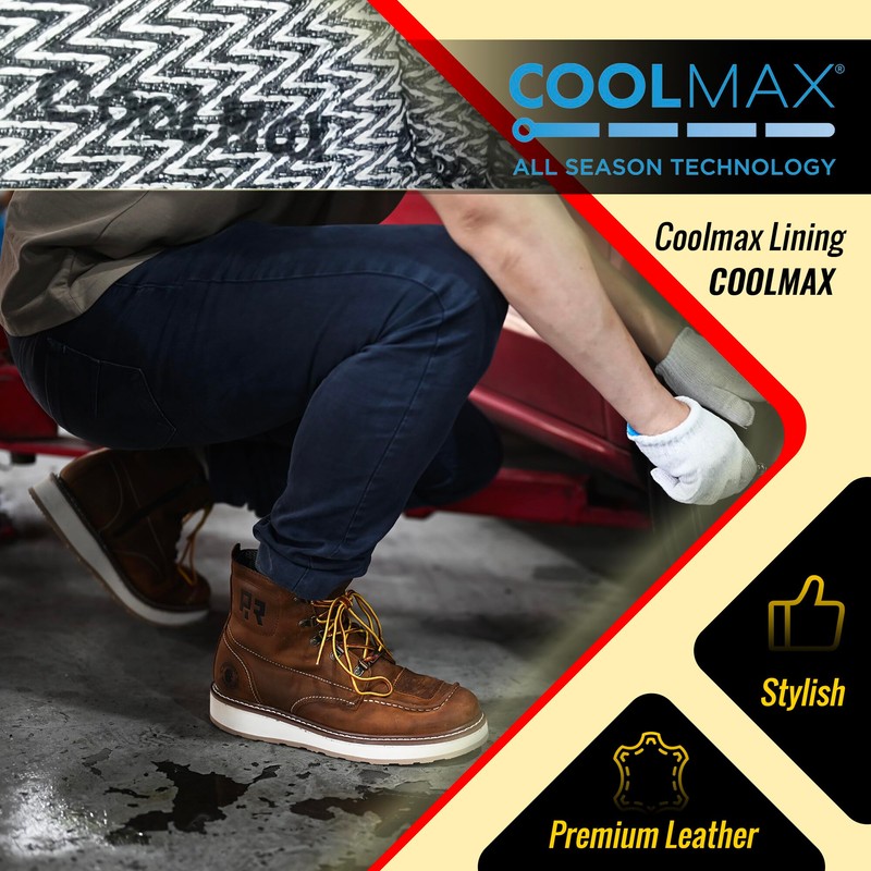 - 【Electrical Shock Protection】Electrical Hazard rated to American safety standards ASTM F2892-18 EH. Don't need to worry about the hazards from an incidental contact with energized electrical circuits or parts when you are wearing these men's brown wedge sole boots. In style for any occasion, not just a motorbike boot, it also can be worn as light-duty work boot and casual boot.