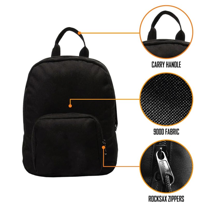 - OUR BACKPACK DESIGN - Only Smaller, Spacious Main Compartment with Zipper Front Pocket, Height 30cm, Width 24cm, Depth 9.5cm, Made of 900D Polyester Material, Lined with 210D Polyester Lining, Adjustable Padded Shoulder Straps and Back Panel.