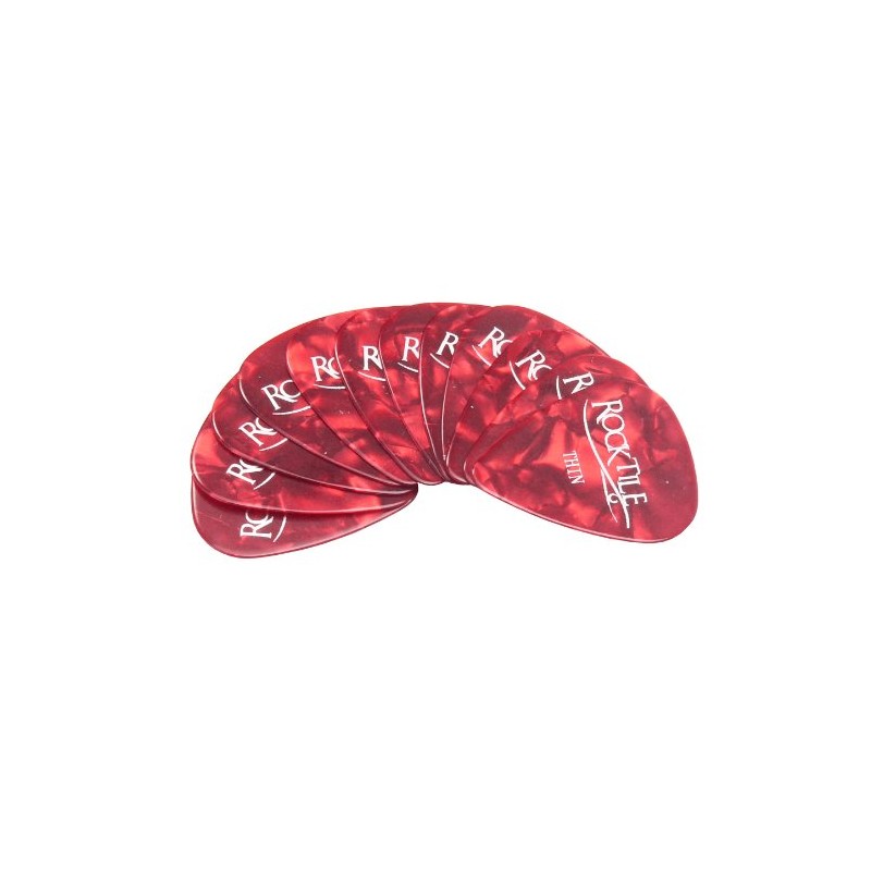 Rocktile Plektren Red Tortoise Thin 12er Pack - Stärke “Thin” (0,5 mm) - Traditionelle Teardrop-Form - Material: Zelluloid - Rot