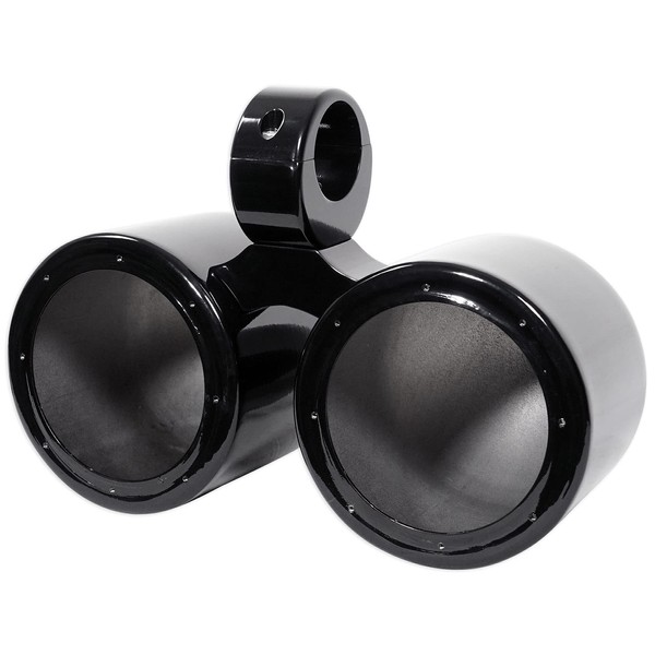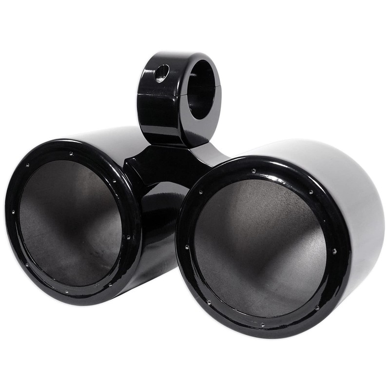 Rockville is proud to introduce our all new line of aluminum wakeboard cans. The DMAC65B features double pod design which allows you to mount two 6.5” speakers. It includes our rugged universal aluminum clamp for easy installation to any wakeboard tower pole measuring from 2" to 2.5" diameter. Six precision molded high impact rubber inserts guarantee fitment on towers from 2” to 2.5”. Our clamp inserts are precision-fitted to sit perfectly inside the metal clamps. The speaker terminals are safely enclosed inside the waterproof speaker canister. ***Please note if you need an insert to accommodate a 1.75" diameter tube please let us know and we will send one out to you free of charge! This awesome double pod is built of super strong aircraft grade 6061 aluminum. The DMAC65B features a black powder-coat finish which offers unparalleled resistance to chipping, scratching, and fading. It is fully marinized which means it will withstand the elements on the water. This unit is 100 % waterproof. What makes our technology the best on the market is that our pods are internally wired! This means the terminals are inside the pod and the wires are fed through pre-drilled holes on the pod and clamp. Simply align the wire opening with the hole on your tower and you are done! No exposed wires or terminals! Aluminum cans will last forever! The sound quality of these are phenomenal! These are the perfect amount of air space to give you the perfect sound quality with the leading marine speakers on the market from brands like Kicker, Rockford Fosgate, etc. Our high efficiency design means more audio output from the same speakers! This means you get louder, cleaner sound with less distortion using our wakeboard enclosures than with other brands.