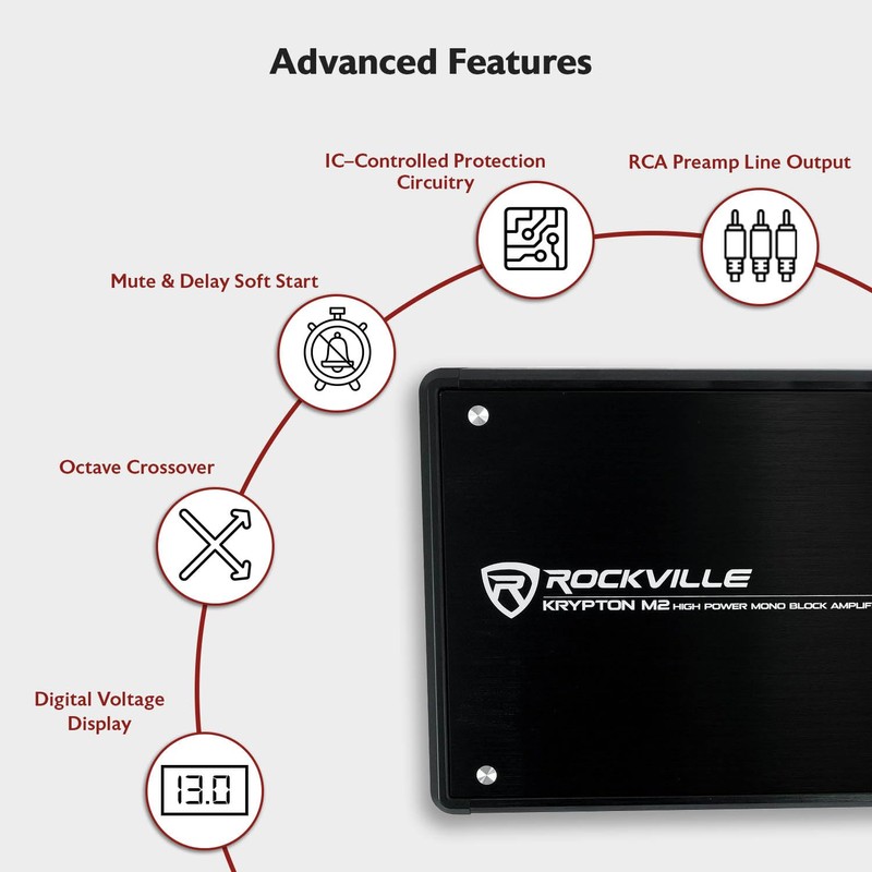 Rockville KRYPTON-M2 Mono Car Amplifier, 1 Ohm, 3000W, Class-D, EQ, Low Pass ...