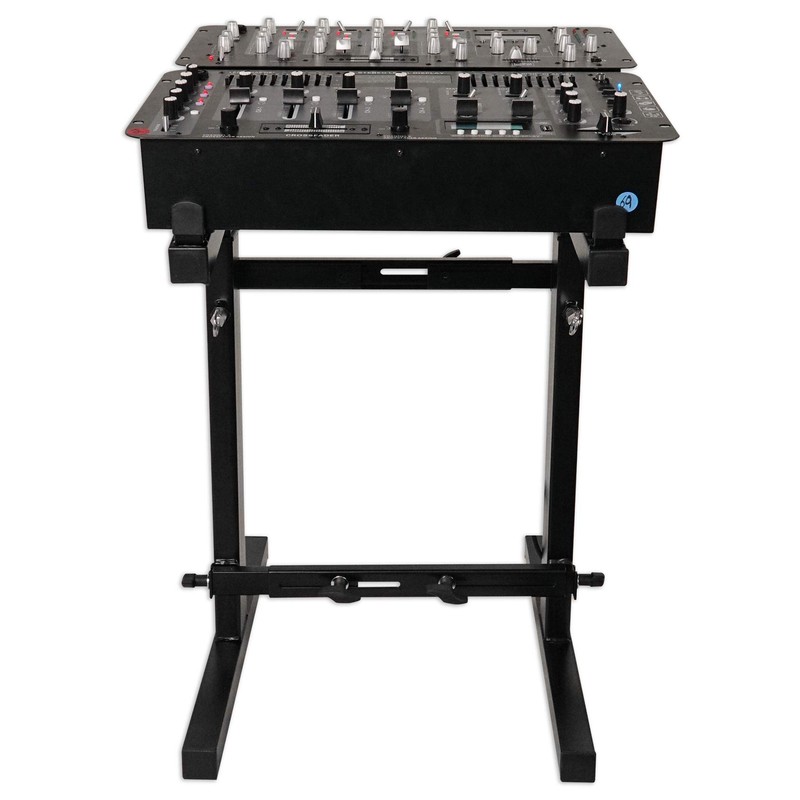 - Steel stand with sturdy arms large enough for mixers, DJ gear, keyboards, and more